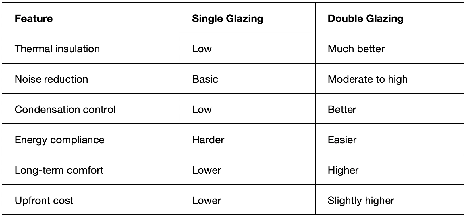 it usually offers better long-term value. In many cases, choosing single glazing to “save money” can cost more later.