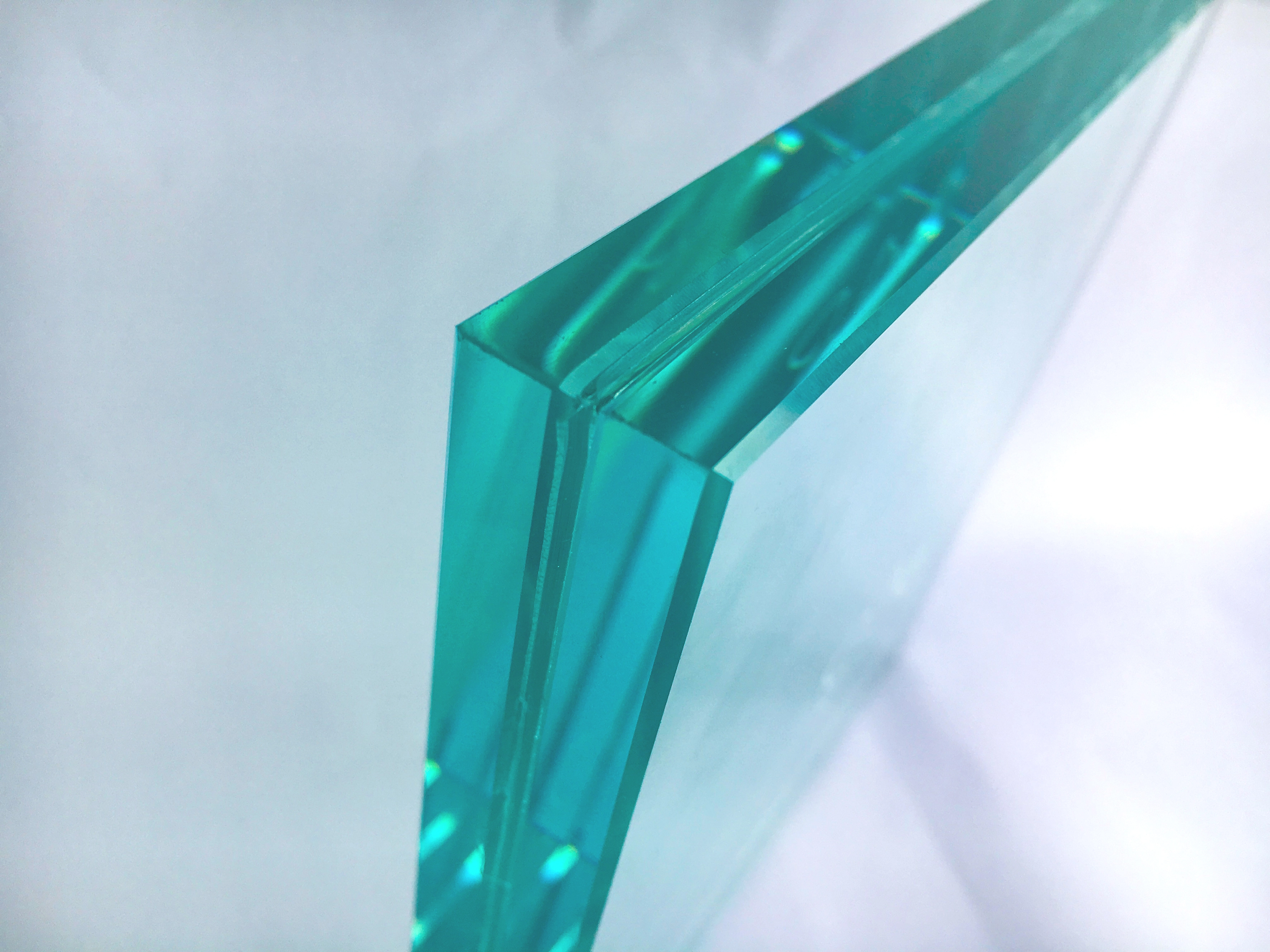 Our standard acoustic laminated glass starts from 5mm tempered + 0.76mm PVB + 5mm tempered, totalling 10.76mm.