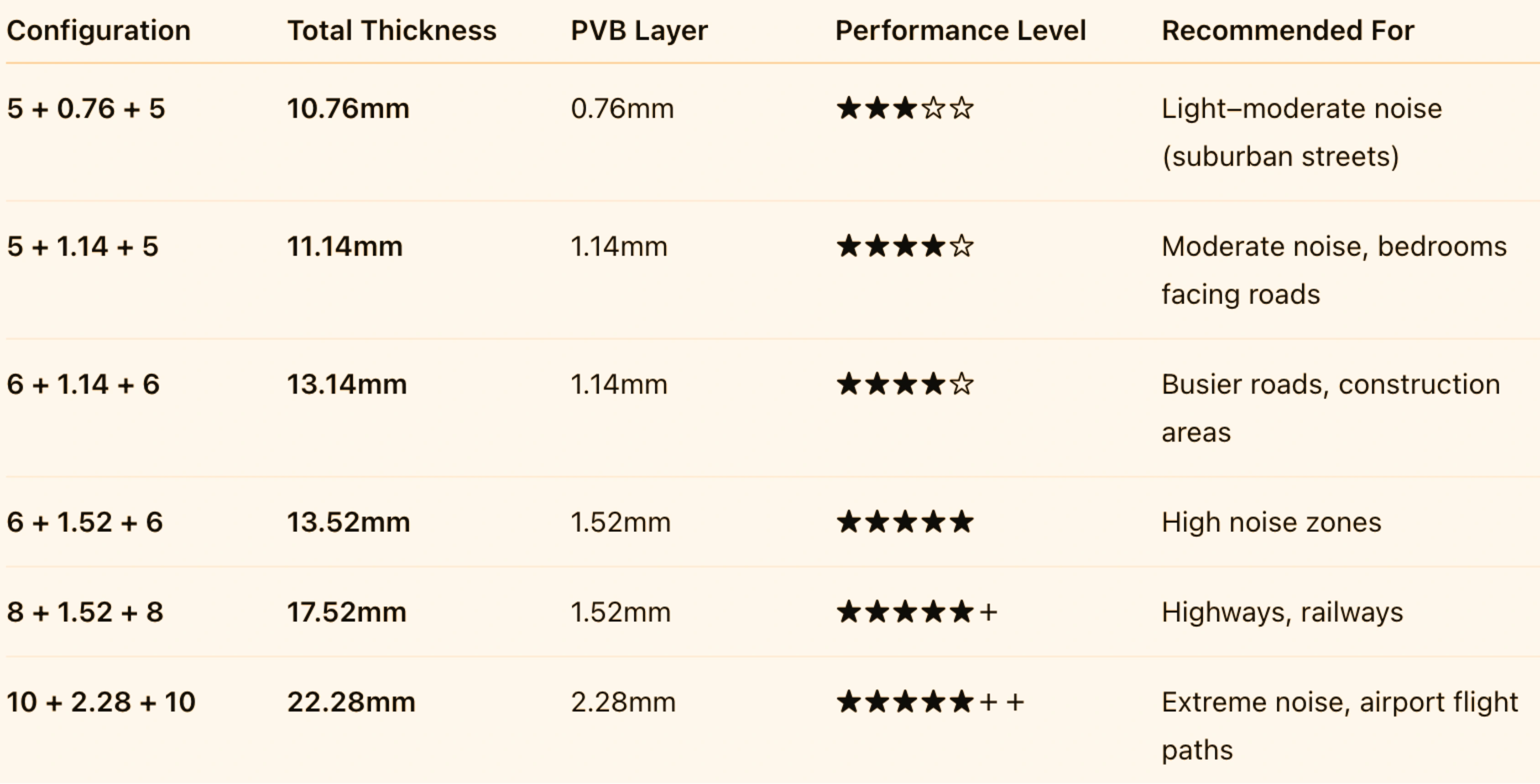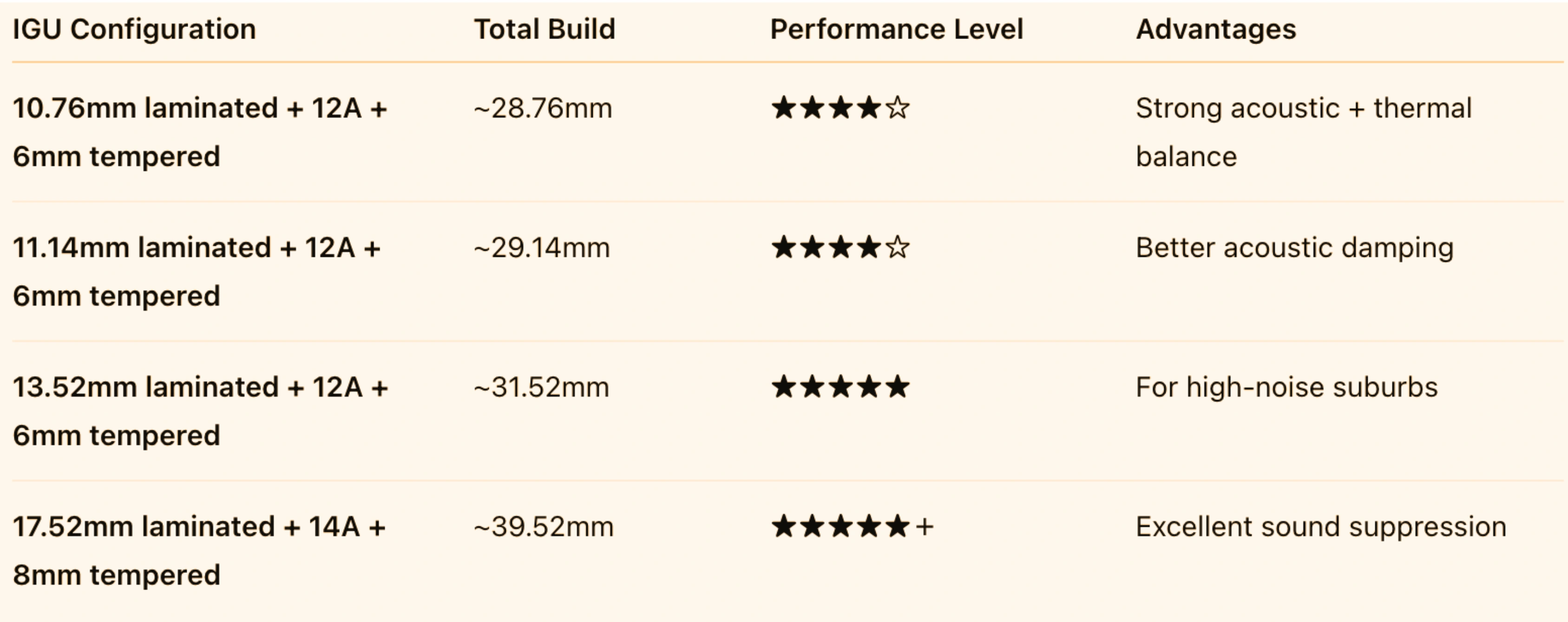 Below is a comprehensive breakdown of acoustic glass configurations available through our product range, including their structure and performance characteristics.