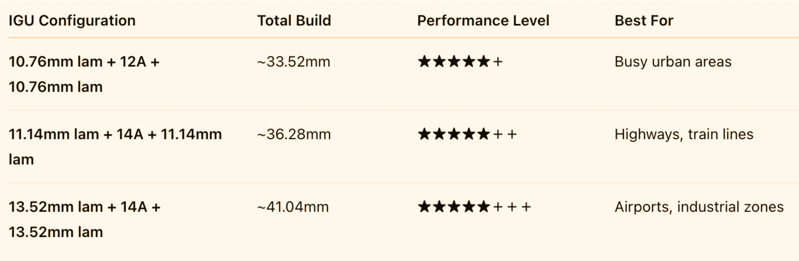 3) Consider single-laminated IGU or double-laminated IGU for maximum acoustic & thermal performance