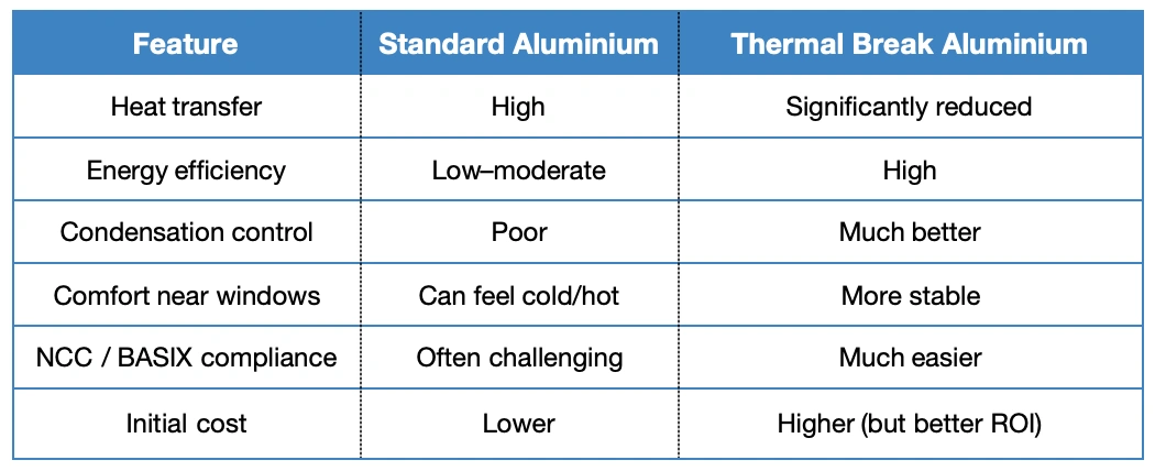 Yes — thermal break is worth it for most Australian homes, especially in climates with temperature extremes or strict energy requirements.